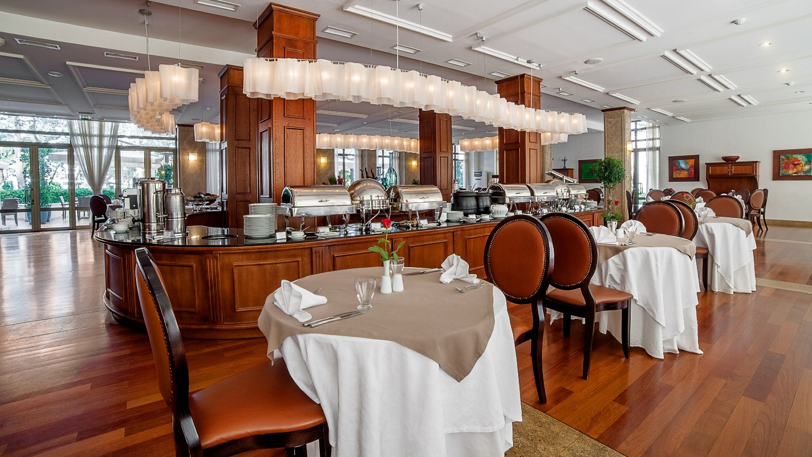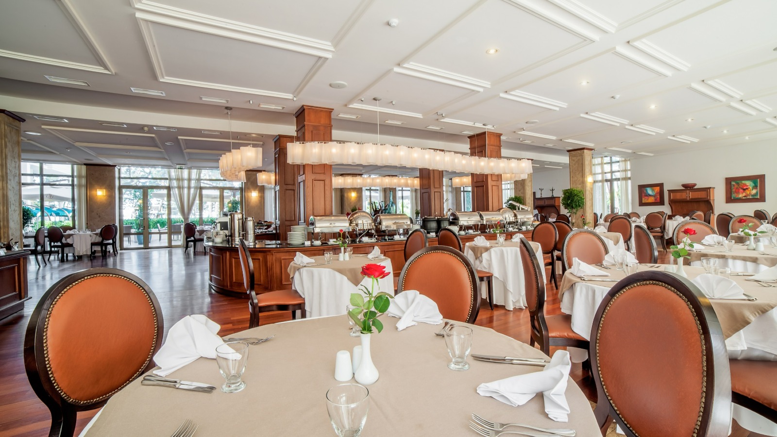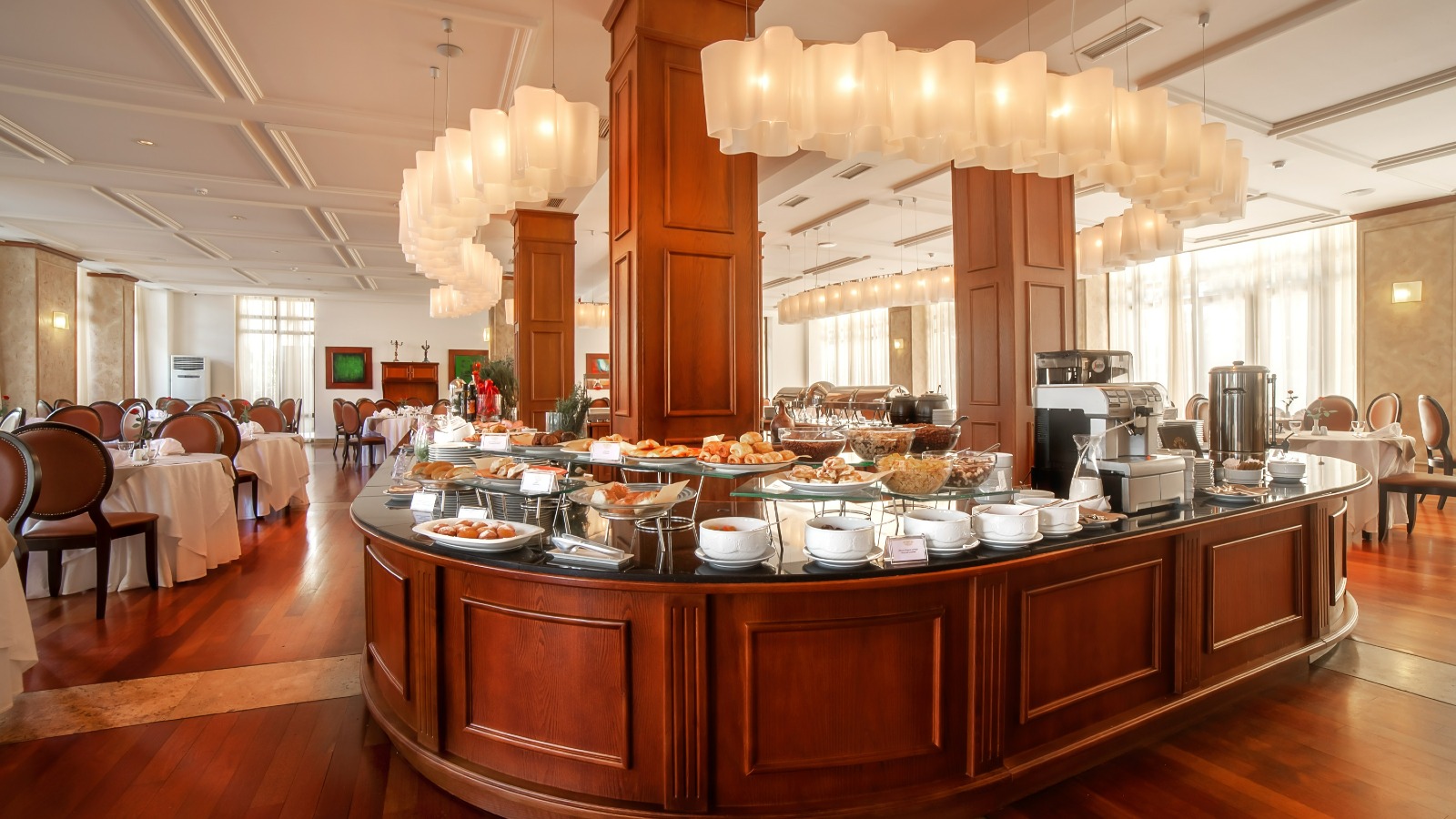 Staying with us means you start your Georgian culinary journey at Adjara Restaurant, with its Lavish buffet, merging Georgian and International gastronomy Restaurant Adjara hosts our hotel guests with full board buffet. Breakfast, lunch and dinner properly matches the taste of all guests with its wide selection of dishes. Homemade pastries, full breakfast with a-la minute eggs and pancakes and Georgian specialties. You can be surprised with live cooking show while lunchtime with international dishes. There are different kinds of thematic events while dinner with National cuisine. You can have local Georgian Buffet dinner accompanied with National folk dance and songs or Somewhat Asian day. The open terrace of the restaurant face to open pool and waterfall makes the wonderful atmosphere especially while sunrise and sunset. We pride ourselves on sourcing the best ingredients to offer you a culinary experience throughout your stay, a true testament to our commitment to luxurious Georgian hospitality.